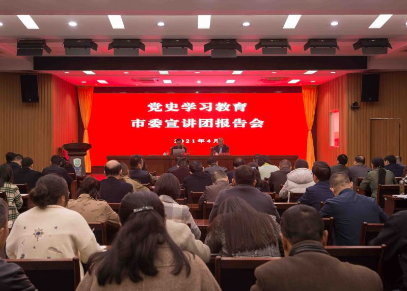 ▲市委宣讲团成员、党史工办陈涌副主任作辅导报告