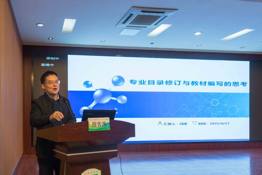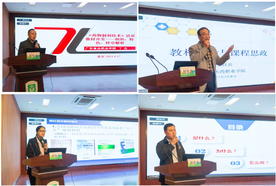 ▲南方医科大学史瑞芬作报告 随后,广东药品食品职业学院制药工程学院院长丁立、江苏医药职业学院教授秦红兵、中国医药科技出版社有限公司教材编辑中心主任何红梅、中国医药科技处出版社有限公司数字出版中心主任罗万杰分别就教材建设进行了经验交流与心得分享。
