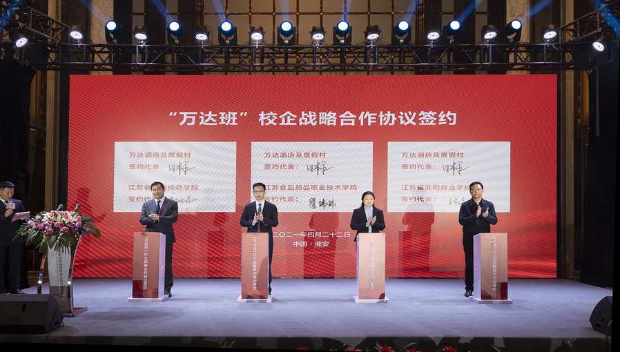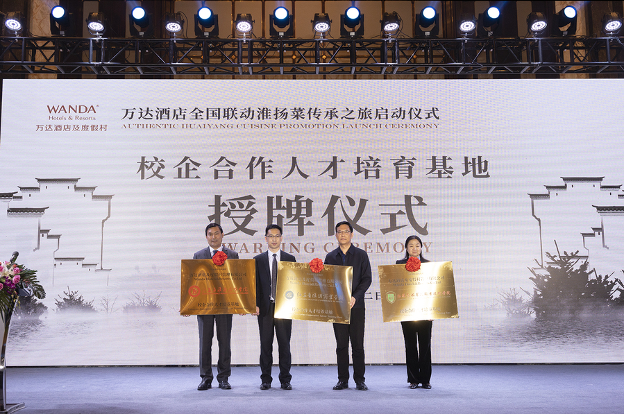 4月22日上午,“寻味淮扬,弘扬国宴”万达酒店全国联动淮扬菜传承之旅启动仪式在淮安市富力万达嘉华酒店举行。启动仪式上,王向红副市长致辞,强调淮安作为淮扬菜的重要发源地,承担传承淮扬菜技艺、推广淮扬菜文化、淮扬菜专门人才培养的历史使命。随后,副市长王向红、我校校长冯锋等十多位领导与嘉宾共同将运河之水注入启动台,开启了此次万达酒店全国联动淮扬菜传承之旅活动。 在活动中,翟玮玮副校长与万达酒店与度假村管理有限公司签订了校企战略合作协议,与万达集团共建“校企合作人才培养基地”。校企双方将进一步深入合作,共同培养高技能淮扬菜烹饪人才及高水平酒店管理人才。这是我校校企深度合作,服务地方区域经济迈出的坚实步伐。 淮扬菜烹饪艺术研究院、酒店学院等部门负责人及师生参加了此次启动仪式。