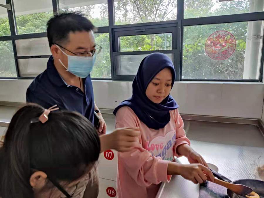 新学期伊始,党委书记陶书中、校长冯锋前往留学生公寓亲切看望了在校留学生。 两位校领导与留学生亲切交谈,深入了解疫情防控、课程学习、校内就餐、宿舍生活等方面情况,勉励留学生珍惜学习机会,严格要求自己,按时保质完成学习任务。提醒大家要遵守学校管理规定,增强安全意识,持续做好疫情防控工作。希望留学生把握时间、加强交流、相互帮助、共同进步,成为中外友好的使者和桥梁。 留学生纷纷表示,非常感谢学校领导和老师们长久以来的关心,在校生活倍感温暖和幸福,一定会牢记嘱托,努力学习汉语、中国文化和专业知识,锤炼提升自身的各项能力。 两位校领导要求国际教育学院细化留学生管理,做到安全有强调、心理有疏导、学习有监管、生活有保障,确保每一位留学生在我校学习生活愉快充实,能够学有所思、学有所成、学有所获、学有所乐。 组织部、宣传部、办公室、国际教育学院等部门相关人员陪同看望。