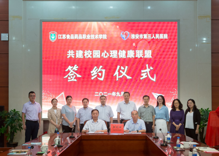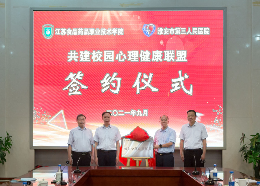 为建立健全大学生心理问题与心理疾病防治体系,探索校医共建校园心理健康的联合新模式,9月15日上午,淮安市第三人民医院与我校在图书馆多功能厅举行共建校园心理健康联盟签约揭牌仪式。 淮安市第三人民医院党委书记范智勇,党委委员、纪委书记虞秀武参加签约仪式,我校党委书记陶书中出席签约仪式,校党委副书记戴光顺主持仪式。 仪式上,陶书中表示,我校高度重视学校心理健康教育工作,并采取了一些行之有效的心理健康教育举措。此次医校合作,不仅拓宽了学校学生心理健康教育的新渠道,完善了心理危机预防与干预的体系,更结合“两在两同”建新功行动,强化了心理工作队伍的专业力量,对学校心理工作专业化、系统化发展具有重要的意义。陶书中表示希望能够在医院专业力量的帮助下,解决一些仅靠学校力量无法解决的问题,进一步服务于广大学生和家长们。