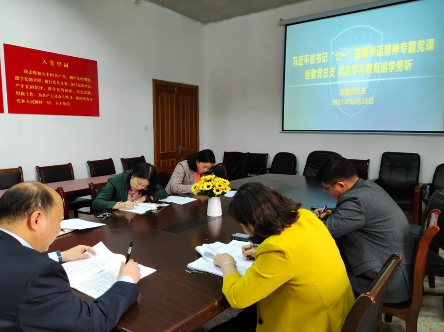 为进一步学习贯彻习近平总书记“七一”重要讲话精神,弘扬伟大建党精神,推动学校高质量发展,副校长安进分别于10月26日下午、10月28日下午为信息工程学院全体教职工、后勤党总支班子成员上了题为“砥砺百年筑伟业 起航奋进新征程”的专题党课。 课上,安进深刻阐述了习近平总书记“七一”讲话的重大意义、主要内容和丰富内涵,让大家进一步深入了解中国共产党的伟大成就、党史的四个阶段、建党精神以及红色精神谱系等。结合学校的发展历程及当前所面临的要求和挑战,安进激励大家,深入学习贯彻习近平总书记“七一”重要讲话精神,最重要的是掌握基本原理、吃透精神实质、把握核心要义,把蕴含其中的理论逻辑、历史逻辑、实践逻辑贯通起来,切实把思想和行动统一到讲话精神上来,把学习的成效转化为工作中的动力,落实到学校事业发展各项任务中去,以优秀的工作成果为学校的高质量发展贡献一份力量。 党课结束后,安进认真听取了各总支委员学习“七一”讲话的心得体会,以及信息工程学院党总支副书记刘玲、后勤党总支书记李金霞对“两在两同”建新功、“学党史 办实事”相关工作开展情况的汇报。安进充分肯定了各总支的特色和亮点工作,同时提出了严格的要求和殷切的期望。他指出,在目前高强度的工作中,要紧密结合部门实际,聚焦发展过程中的突出短板问题,积极寻找破解难题的方法,以师生为中心、以立德树人为根本任务,确保学习教育与中心工作和服务师生同频共振。