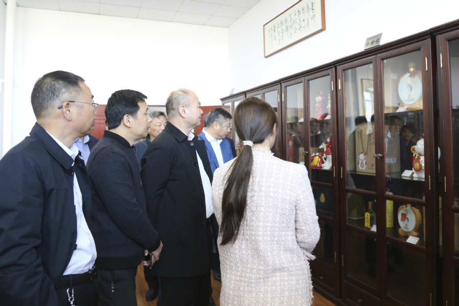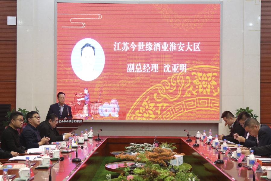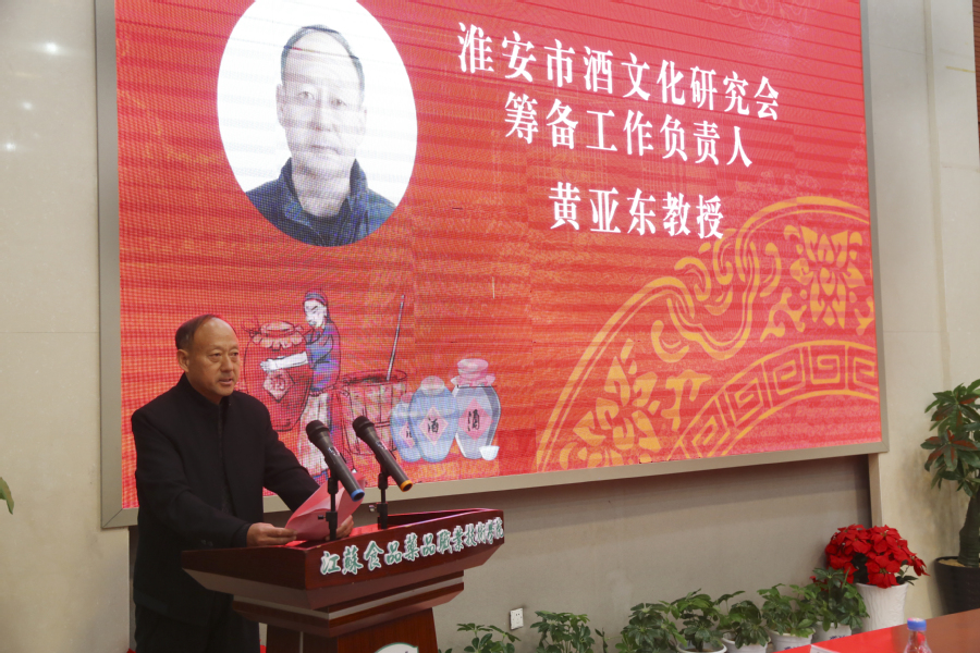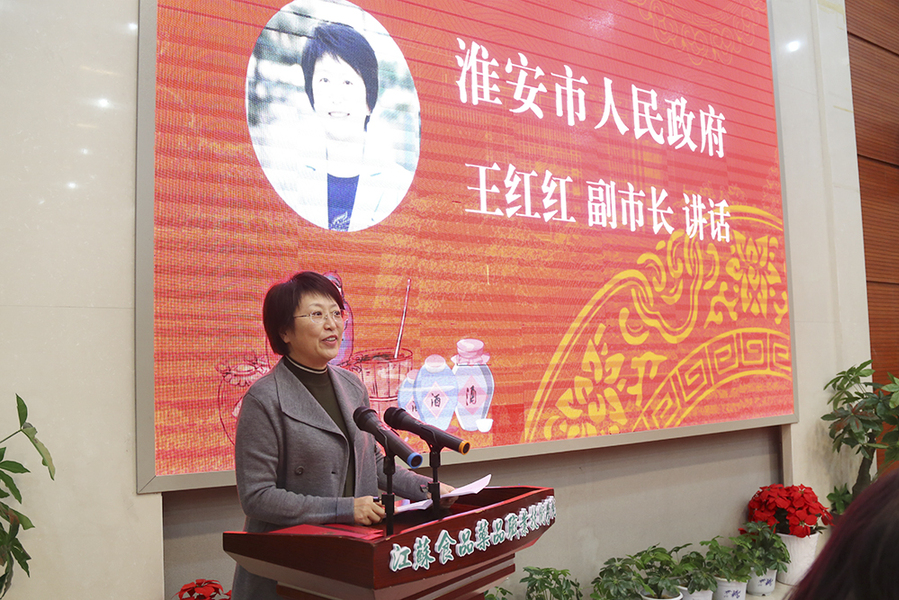 ▲副市长王红红发表讲话 会议期间全体与会人员聆听了杨柳教授的专题报告,参观了酒文化研究院、淮安市酿酒工程重点实验室。