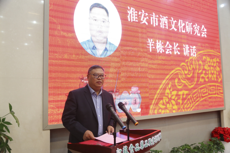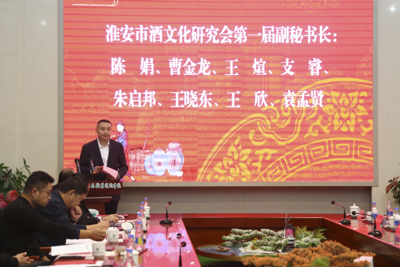 ▲赵志鹏发表讲话 最后副市长王红红对研究会的成立表示祝贺,提出了要求,同时希望研究会能够坚持文化内涵主线不动摇,积极对接地区产业发展的布局和规划,搭建政府对接产业的交流平台,坚持研究为基、服务为要,为淮安酒业发展和酒文化传播贡献力量。