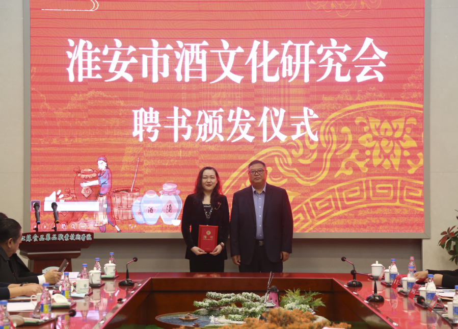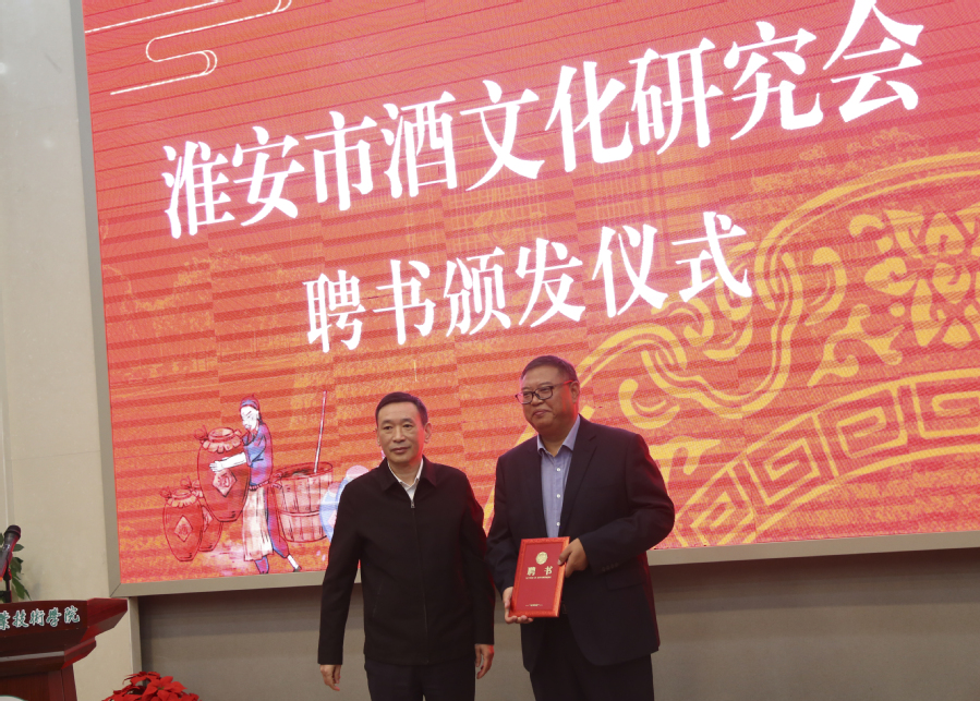 ▲羊栋颁发聘书 研究会新任会长羊栋发表讲话并对研究会近期主要工作作了安排,提出要加强综合协调,积极促进校、政、行、企沟通交流;要坚持研究为本,助推淮安酒文化研究繁荣发展;要抓好协会自身建设,不断增强协会的影响力。