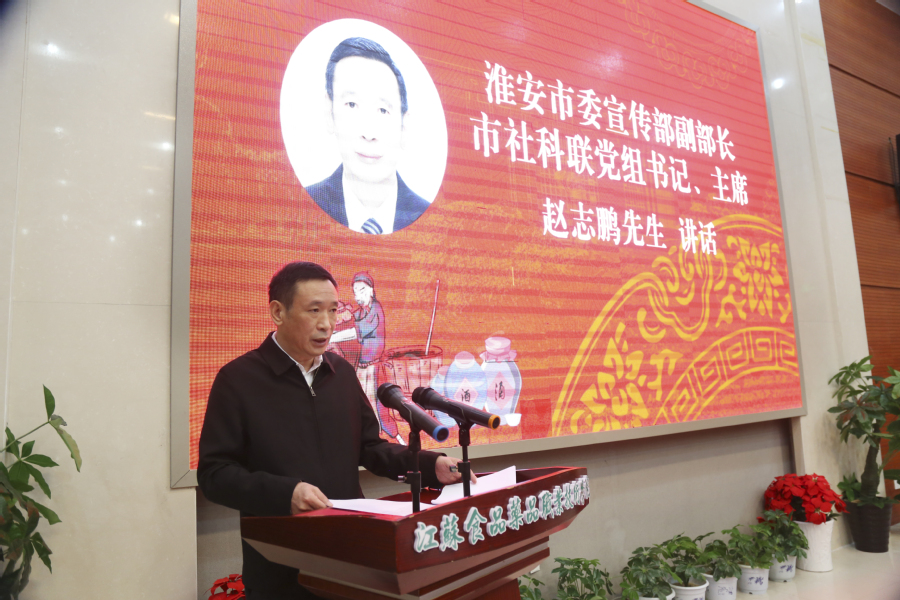 ▲校长冯锋聘任羊栋为我校酒文化与烹饪艺术研究院院长 赵志鹏发表讲话,对研究会发展提出了建议和要求:一是要提高政治站位,做淮安市酒文化研究的压舱石;二是要聚焦研究交流,做淮安市酒文化研究交流的主平台;三是要着眼酒企品牌,做淮安酒企品牌塑造的智慧库;四是要加强学会建设,做淮安专业协会发展的排头兵。