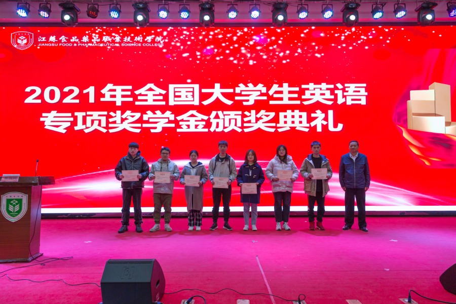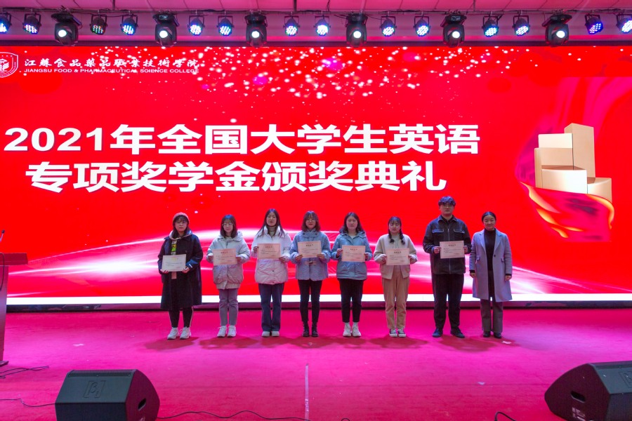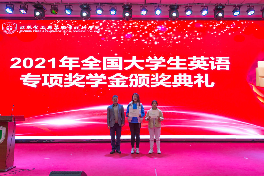 为总结英语学业支持的成果,激励学生刻苦学习,进一步激发学生学习的自觉性和主动性,11月29日晚,学校在教学楼C115举行了2021年大学生英语专项奖学金颁奖典礼,校领导冯锋、戴光顺、翟玮玮出席本次典礼,典礼由教务处处长贾韶千主持。 典礼首先由学工处处长朱劲松宣读《关于表彰英语专项奖学金的决定》,表彰陶思颖等同学为全国大学英语六级专项奖学金获得者、余慧等同学为全国大学英语四级专项奖学金获得者,其中一等奖学金2人,二等奖学金14人,三等奖学金437人。 党委副书记戴光顺、副校长翟玮玮分别为此次获得二等奖学金的谢雨轩等14名学生颁奖,并与学生亲切交流,向他们表示祝贺。 校长冯锋为陶思颖、余慧两位一等奖学金获得者颁发“英语学习标兵”及英语专项奖学金荣誉证书。