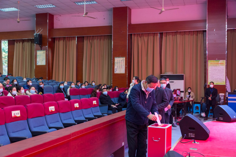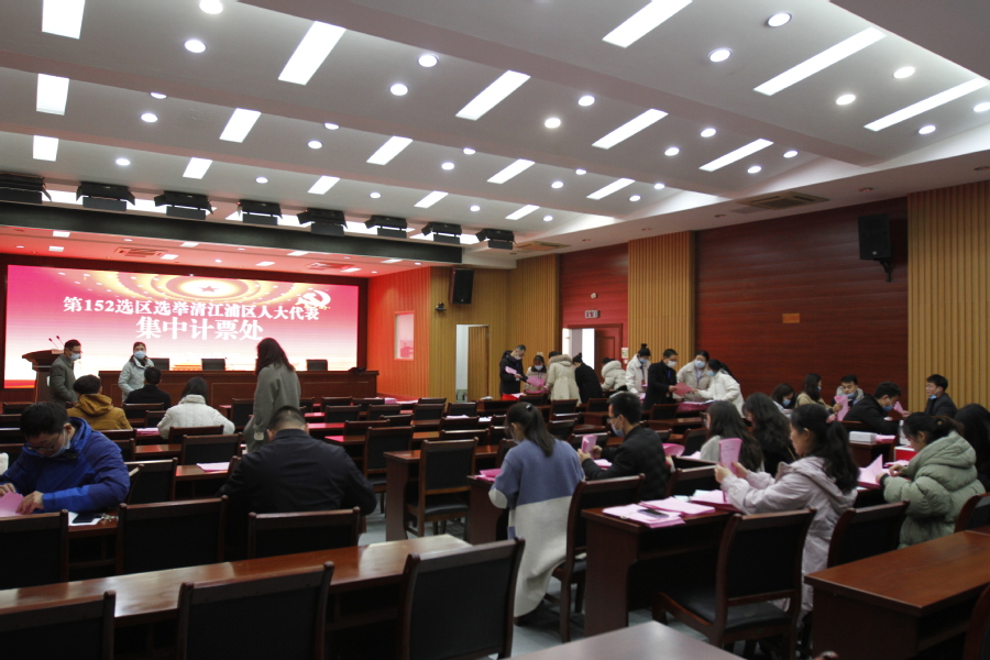 ▲校党委委员、组织部长主持选举会 投票结束后,在学校第四会议室进行了集中计票,代表候选人迟恒、王静分获7169、3992赞成票,选举结果待清江浦区选举委员会审定后正式公布。