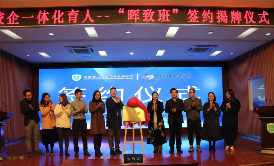 为更好适应高等职业技术教育事业发展的要求,推进校企一体化育人机制,共享资源、共谋发展,12月5日,我校与晖致医药有限公司签约联合共建“晖致班”,副校长翟玮玮、晖致医药有限公司零售事业部江苏大区经理刘烨等一行共同出席签约揭牌仪式。 会议由校企办主任於文刚主持。首先翟玮玮向刘烨一行表达了诚挚的欢迎及感谢,并通过十四个方面介绍了我校的发展历程、规划、取得的成绩及未来的发展目标,使晖致医药一行对我校有了更直观的认识。晖致医药刘烨致辞说,江苏食品药品职业技术学院是一所有底蕴有内涵的学校,是国家优质高职院校,他表示非常愿意参与到校企共同育人当中,在合作中探索更优质更高效的联合培养机制,共同培育实用型、实战型人才。紧接着,晖致医药人力资源部总经理黄雯茜向我校师生介绍了晖致的发展情况、主要产品方向及企业文化,对人才培养、晋升途径做了简要表述。 晖致有为,起航未来,在全体师生的见证下,翟玮玮与刘烨签署“晖致班”合作协议,并在掌声中圆满进行了揭牌仪式。 药学院党政主要领导及有意向加入晖致班的学生共同参加了签约揭牌仪式。