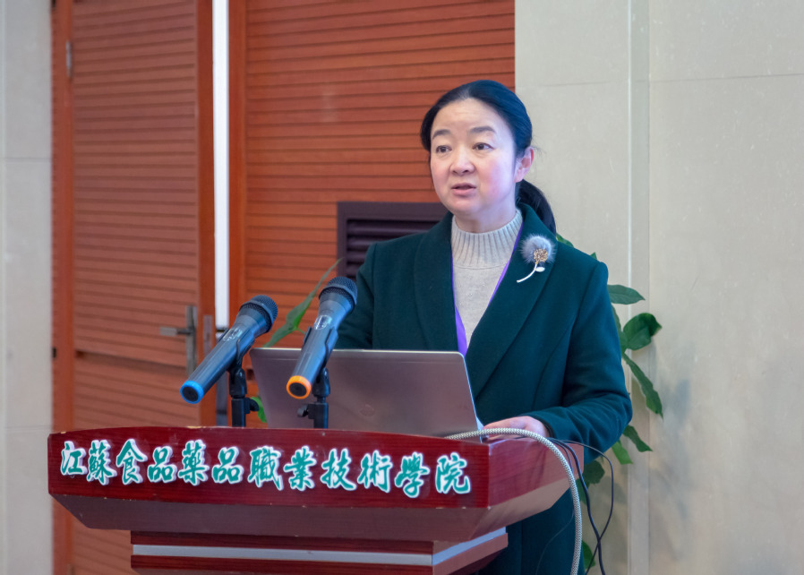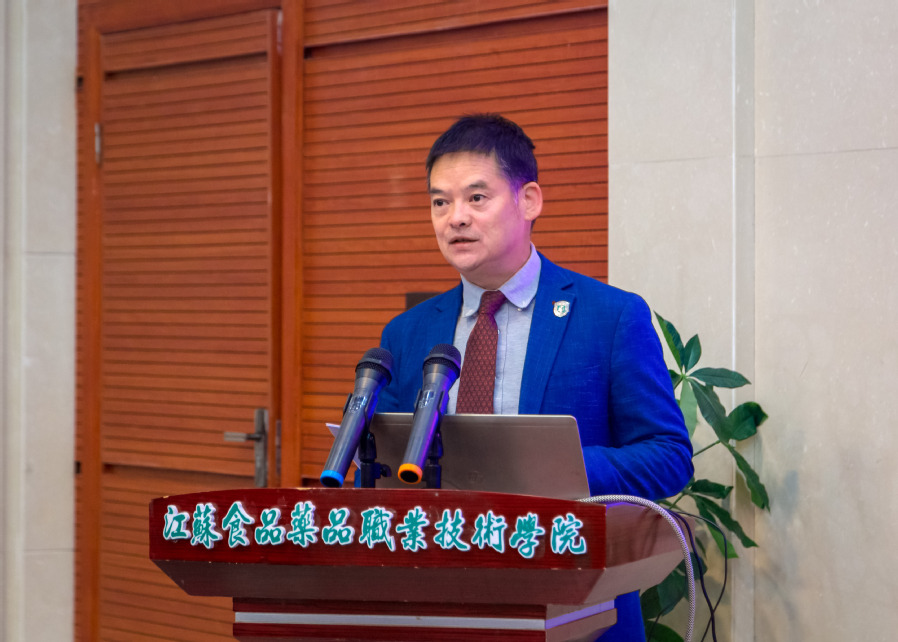 ▲校长冯锋作年度工作报告 随后,全体参会人员合影留念,并参观了酒文化与烹饪艺术研究院。 第二阶段,学校副校长翟玮玮从“双高计划”建设、洪泽湖产业学院建设、食品研发及检测中心建设、银校合作项目四个方面向理事会进行了关于学校人才培养与服务地方经济发展情况的报告。