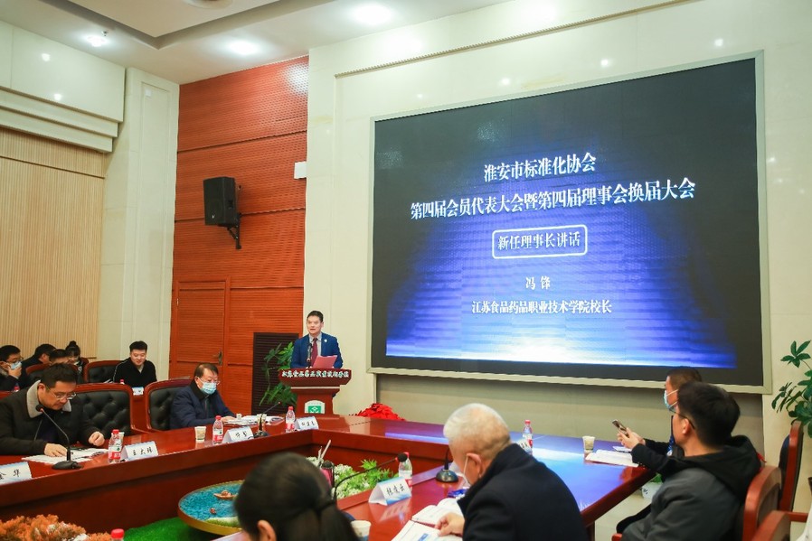 12月26日,淮安市标准化协会第四届会员代表大会暨第四届理事会换届大会在我校召开。淮安市市场监督管理局苏简政副局长、淮安市市场监督管理局标准化处王娟处长、淮安市标准化协会王志伟主任,我校党委书记陶书中、校长冯锋等出席会议并讲话。 全市重点企业代表、高校科研院所代表、会员单位等50余人参加了会议。大会通过了第三届理事会工作报告、第三届理事会财务工作报告、章程修订案、会费收取标和管理办法,并选举产生了协会第四届理事会。冯锋当选为协会第四届理事长,王卫兵当选为秘书长,张青春当选为监事会监事长,选举产生理事44人、副理事长14人。 陶书中在致辞中表示,要深刻领会《国家标准化发展纲要》精神,准确把握以高标准引领高质量发展的主攻方向,并希望本届协会用标准助力高技术创新、支撑高效能治理、保障高品质生活,在全球标准化体系变革中赢得先机和主动,为我市建设要素涌动、活力迸发的“创新淮安”贡献标准化的智慧和力量,为实现中华民族伟大复兴中国梦做出标准化人的新贡献。