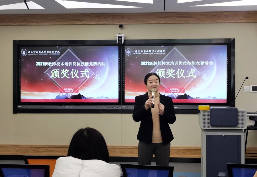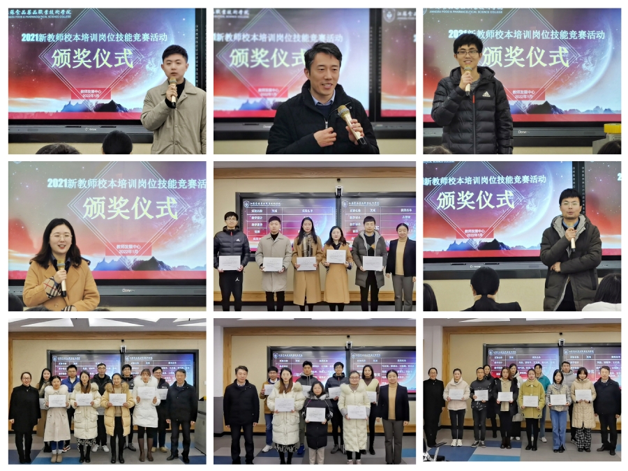 1月6日上午,2021新入职教师岗位技能竞赛颁奖仪式在教学楼智慧教室B207举行。翟玮玮副校长出席颁奖仪式,仪式由教师发展中心副主任王贺玲主持。 颁奖仪式分为四个赛项进行,获得一等奖的新教师发表了获奖感言,感谢学校和教发中心给予好的平台,为他们的角色转变、快速成长奠定了基础,获奖是对自己的鼓励,只有不断学习,才能不断提高教学技能。 翟玮玮在颁奖后发表讲话,她强调新入职教师要调整学习的路径和方法,充分认识和了解教师的岗位职责。勉励新教师要明确职业发展的目标、守住本心、努力拼搏、平衡好工作和生活的关系,不断进步。 教务处处长贾韶千对新教师提出了希望,希望新教师要时刻保持对自身的反思,不断提升教学素养,遵守教学规范,培养终身学习的意识和责任意识。 本次颁奖典礼的举行标志着2021“启航培训班”新入职教师培训圆满结束。教师发展中心在2021年组建启航培训班,本次培训班课程进行了模块化改革,由校领导领衔的优质培训师团队为班底,本次培训历时5个月,参赛作品133项,获奖66项,为新入职教师树立了正确的价值观,提升了新入职教师的教学技能,为新教师站稳讲台打下了坚实的基础。