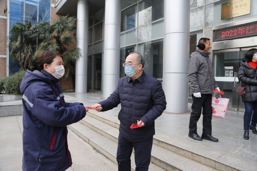 2月1日上午,校党委书记陶书中、副校长安进,亲切看望慰问了大年初一仍坚守在工作岗位的一线教职员工。