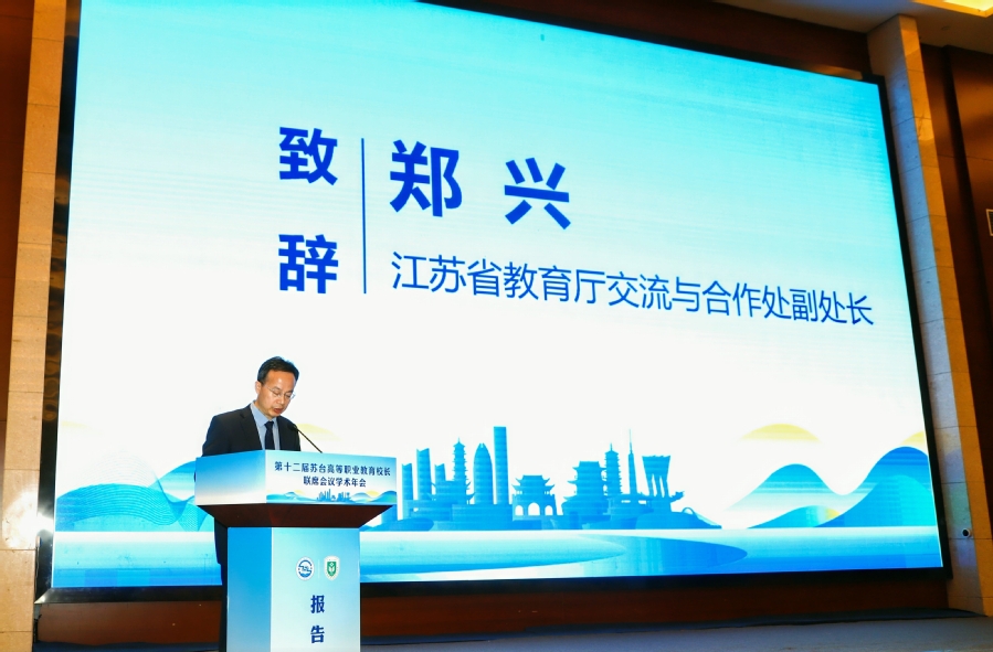 大会合影 会议旨在促进校际合作、校长情谊,构建苏台高等职业教育交流合作平台,共同促进和引领苏台高等职业教育发展。苏台两地专家围绕一系列核心议题展开研讨,包括融合人工智能的职业教育人才培养质量保证体系;数字化赋能职业教育,教育教学资源共建共享;高职学院“新生态课改”工程的探索与实践等。 江苏省人民政府台湾事务办公室副主任孙继兵,淮安市人民政府副市长王向红,江苏省教育厅交流与合作处副处长郑兴,苏台高等职业教育校长联席会常务副会长,台湾私立校院协进会会长、我校党委书记薛宇等出席会议。开幕式由我校校长翟玮玮主持。