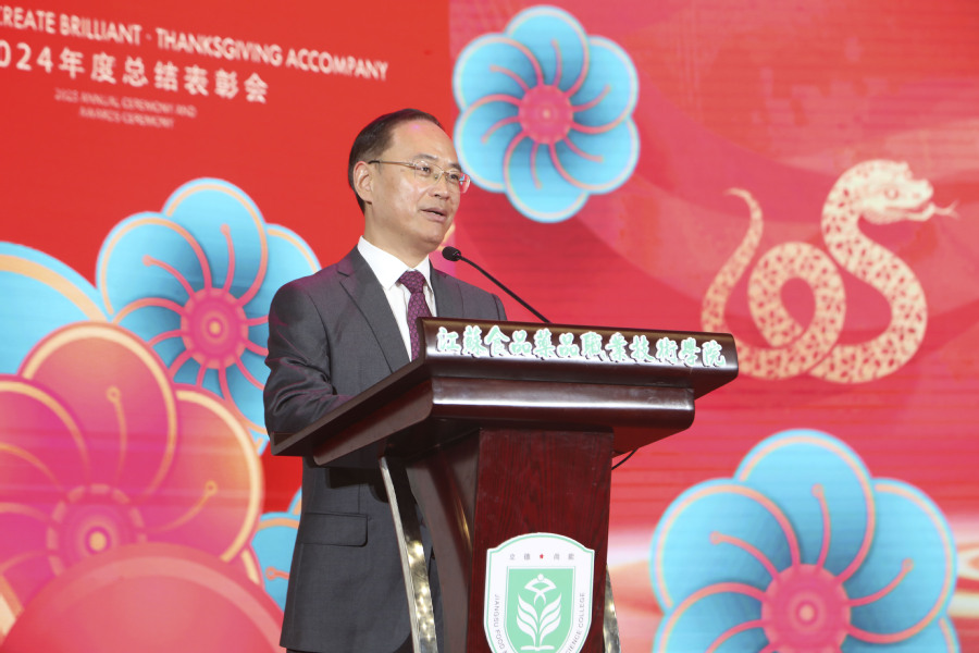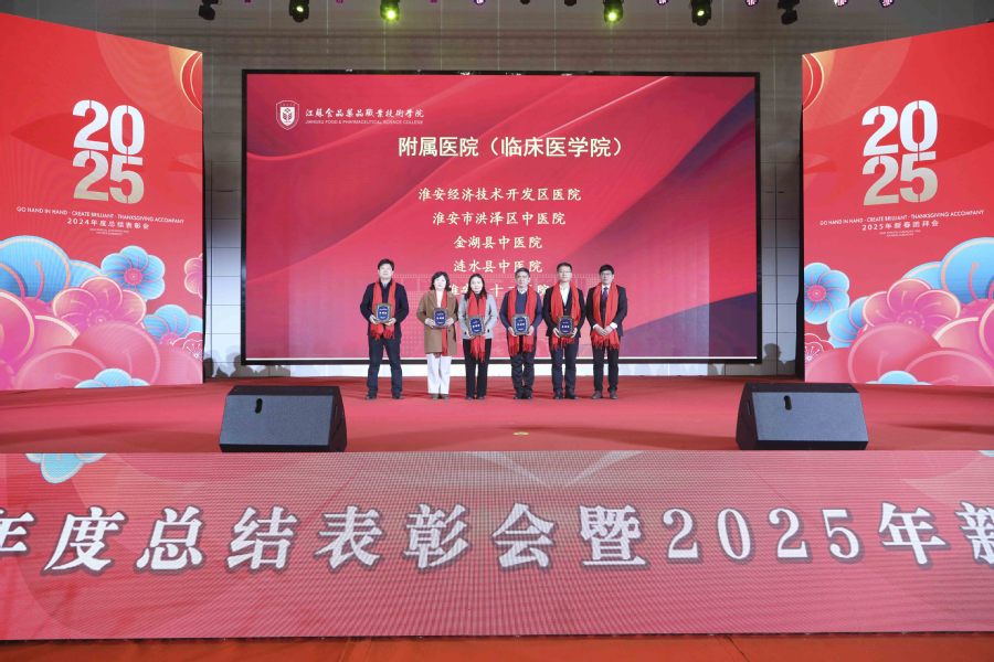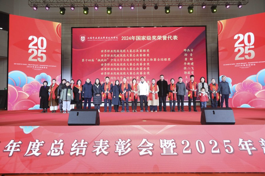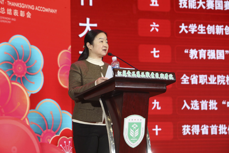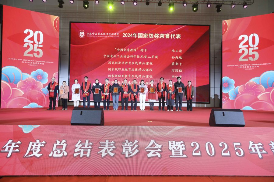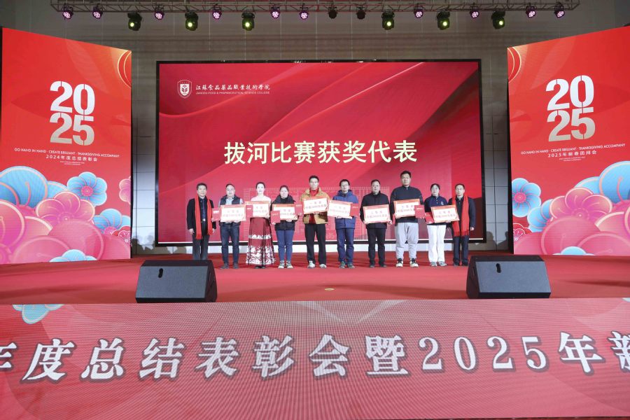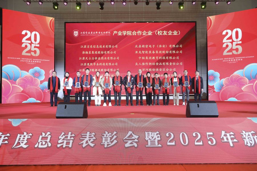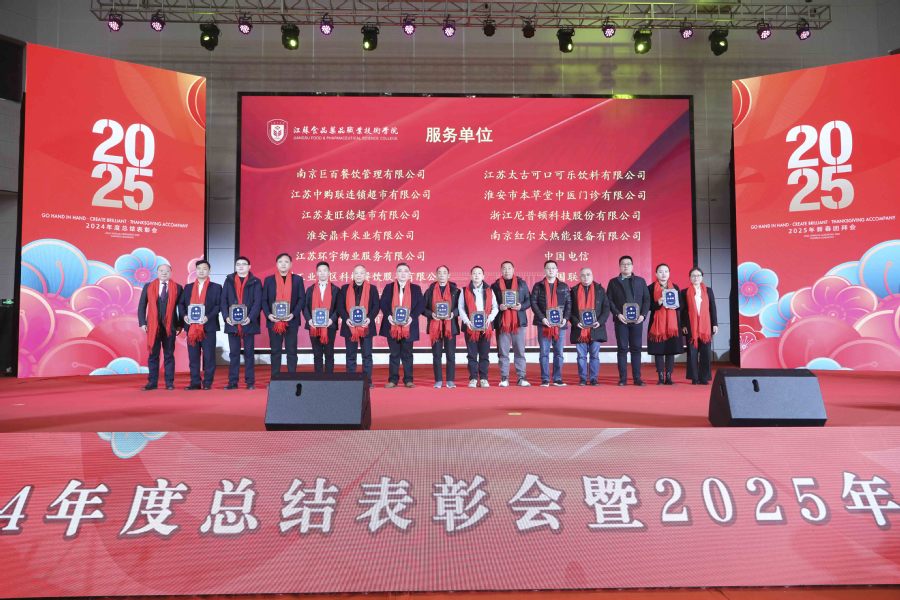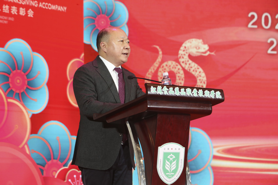 为服务单位颁奖 薛宇书记致新春贺词。他表示,感恩伟大时代给予我们职业教育大有作为的空间,感恩江苏省委省政府、省教育工委和淮安市委市政府给予的大力支持,特别是感恩我们全体教职工家属的帮助和关怀。感动全体教职工不计得失、甘于奉献,感动每一个拼搏的瞬间。感谢服务单位、合作企业、校友企业为学校发展提供的有力保障,感谢全体教职工的无私付出,感谢全体学生给学校带来的生机与活力。他希望大家团结一心、携手共进,聚精会神谋发展,心无旁骛干事业,在加快建设教育强国的时代大潮中乘风破浪,奋力书写“强国建设、食院担当”时代篇章!