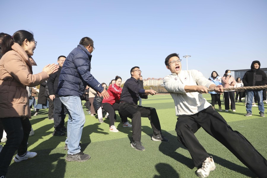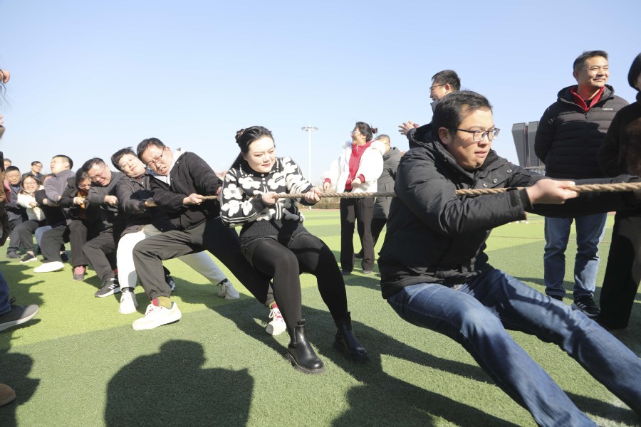 为进一步丰富教职工的校园文化生活,激发工作热情,营造和谐融洽的工作环境,1月16日下午,我校举办了一场精彩绝伦的拔河比赛。此次活动由校工会和基础教学部精心组织,吸引了来自学校机关和各二级学院分工会的19支队伍踊跃参与 。 比赛采用单败淘汰制,各参赛队伍在赛场上展开了激烈角逐。经过五轮紧张激烈的比拼,基础教学部队、人工智能学院队脱颖而出,荣获一等奖;数字经济学院队、酒店学院队表现出色,斩获二等奖;机关7队、制药工程学院队、直属支部队、机关1队也凭借顽强的斗志,获得三等奖。其中,决赛在基础教学部队和人工智能学院队之间展开,气氛尤为紧张热烈。党委书记薛宇亲临现场,亲自为决赛吹响哨声。两支队伍的选手们咬紧牙关、顽强拼搏,充分展现出坚韧不拔的毅力和勇往直前的精神。赛场边,加油声、喝彩声此起彼伏,将比赛气氛一次次推向高潮。 比赛中,各参赛队员心往一处想,劲往一处使,齐心协力、奋力拼搏,充分展示了乐观向上、积极奋进的精神风貌。通过此次活动,各分工会的凝聚力和向心力得到进一步增强,教职工之间的交流与感情也得到了极大的增进,为学校的高水平建设集聚了强大力量,达到了“愉悦身心、强身健体、凝聚人心”的预期目标,比赛取得了圆满成功。
