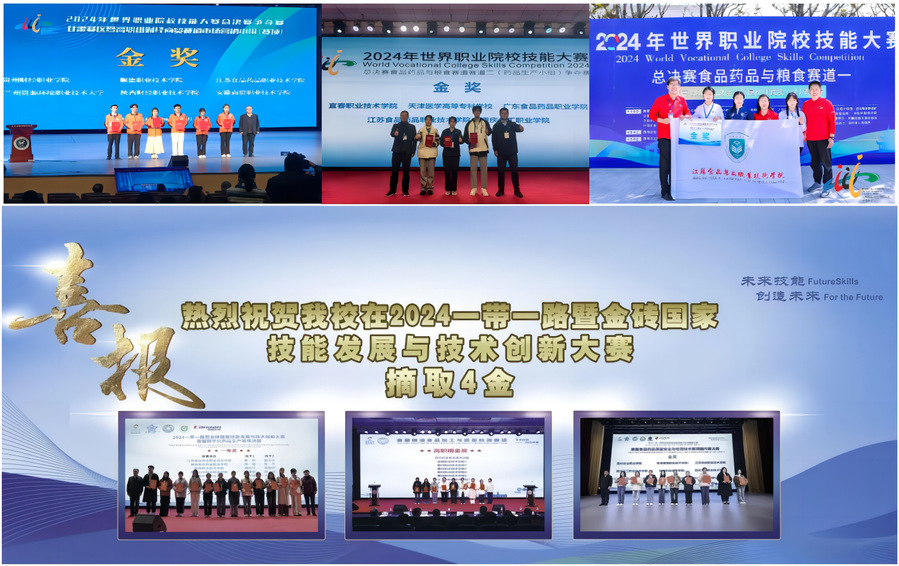 五、技能大赛国赛全省第一,技能型人才培养达到新高度 学校在技能大赛国赛勇摘3金2银1铜,排名全省高职院校第一。江苏省职业院校技能大赛斩获9金18银15铜, 2024“一带一路”暨金砖国家技能发展与技术创新大赛摘取4金10银11铜。承办技能大赛国赛1项、省赛3项、金砖赛2项,推动行业技能水平不断提升。