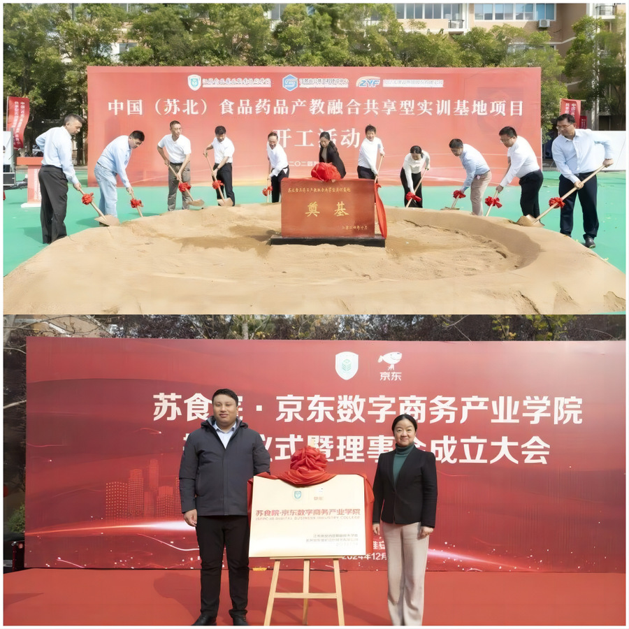 七、“教育强国”工程顺利开工,产教融合塑造新形态 “教育强国”工程“中国(苏北)食品药品产教融合实训基地”项目开工建设,建设“京东数字商务产业学院”等产业学院9个,获省级首批现代产业学院建设项目1项。入选工信部第四批“麒麟工坊”实训基地共建单位,全省仅2所高职院校入选。学校蝉联中国高职院校产教融合竞争力50强。