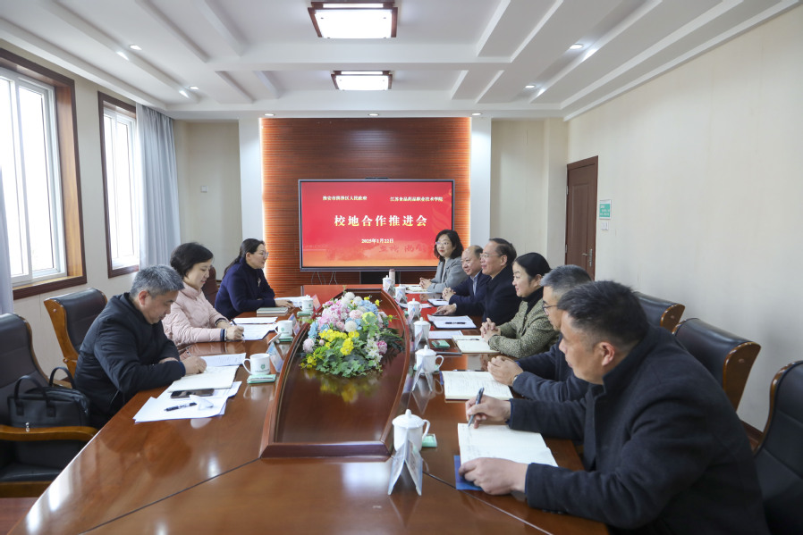 1月22日,我校与淮安市洪泽区人民政府举行校地合作推进会,此次会议旨在深化洪泽湖产学院良性运行管理,进一步推进校地深度合作。学校党委书记薛宇、校长翟玮玮、党委副书记安进、副校长张军,洪泽区区委书记沈晓红,区委常委、统战部部长管桂芬等出席推进会。 薛宇代表学校热情欢迎了来宾,首先简要介绍近年来我校在人才培养、师资队伍建设、专业链与产业链融合、服务区域经济社会发展方面取得的成绩;其次,围绕洪泽湖产学院发展规划、科学定位、校舍安全、少数民族学生管理、产教融合、园中校建设、资产划拨等事宜,与洪泽区参会领导进行了深入交流和探讨;最后,他强调学校正在推进中国食品产教融合共同体和江苏(淮安)绿色食品产教融合联合体以及淮安食谷建设,我校将以淮安食品科技产业园为载体,将“苏食院所能”与“洪泽区所需”结合起来,围绕洪泽区发展需求,不断夯实和拓宽合作契合点,推动区校合作共赢,为洪泽区经济社会高质量发展贡献力量。 沈晓红对我校长期以来对洪泽区经济社会发展所给予的支持表示感谢,并高度评价了洪泽湖产学院在促进地方产业发展中的积极作用。她提出,洪泽区正积极实施工业强区战略,重点突出食品工业、纺织工业等主导产业,优化沿湖、沿河产业布局,着力打造现代化湖滨生态旅游新城,希望双方能够在功能性食品、职工疗养基地、园中校、校中园、研创空间、校园安全保障、周边环境整治、重点企业联合招商等方面继续深化合作,制定深化合作清单,推动洪泽湖产学院在良性运行管理的基础上,为地方经济社会发展贡献更多智慧和力量。 本次校地合作推进会的成功举办,不仅加深了双方的了解和友谊,更为洪泽湖产学院的良性运行管理和校地合作的深化奠定了坚实的基础。我校将继续秉持“服务地方、贡献社会”的宗旨,与洪泽区携手共进,共同书写校地合作新篇章。 淮安食品科技产业园管理办公室负责人,学校党委办公室、校长办公室、洪泽湖产业学院负责人参加会谈。