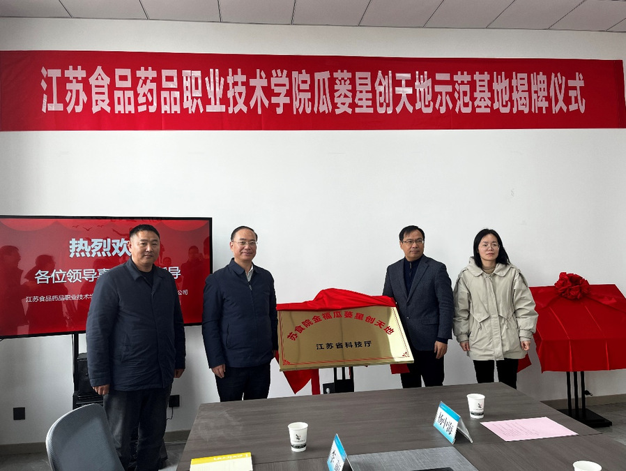 3月5日,我校瓜蒌星创天地示范基地揭牌仪式在涟水县举行。校党委书记薛宇,涟水县政府党组成员、科技镇长团团长薛金林,涟水县科技局、农业农村局相关领导及企业代表共同出席活动。薛宇书记和薛金林团长共同为示范基地揭牌。 薛宇指出,示范基地的落成是学校深化产教融合、赋能乡村振兴的创新实践,未来将依托技术研发与人才培育优势,推动瓜蒌产业从种植到加工全链条升级,为淮安绿色食品产教联合体建设贡献力量。还简要介绍了学校深耕食品、药品领域的办学历史,强调学校始终以“服务产业需求、助力区域经济”为使命,愿与涟水县进一步深化技术攻关、人才培养、品牌打造等多领域、深层次务实合作,形成长效联动机制,更好培育新动能、新引擎。 薛金林提出,示范基地是科技创新驱动农业现代化的生动实践,具有标杆意义。未来将依托星创天地“六有标准”,整合高校科研资源与企业市场动能,加速瓜蒌深加工技术转化。涟水县将以此次合作为契机,围绕现代农业发展需求,精准对接产业与人才缺口,推动校地战略合作协议落地见效。 “苏食院金福瓜蒌星创天地”是经江苏省科技厅批准成立,由我校与涟水雨果农业发展有限公司共建,集技术孵化、创业扶持、联农带农等功能于一体的省级农业科技创新创业示范平台。基地将通过“田间课堂”大力培育“新农人”,联合攻关高附加值产品开发新技术,并借助电商培训等新模式提升“涟水瓜蒌”品牌竞争力。 此次揭牌标志着我校与涟水县在产教融合、科技兴农领域迈出了坚实一步。未来,双方将以星创天地为纽带,推动“科技+教育”双轮驱动,校企携手共筑乡村振兴新引擎,书写校企合作、兴农富民的新篇章。 揭牌仪式后,薛宇书记一行参观了示范基地和瓜蒌生产车间,并与企业负责人深入交流。