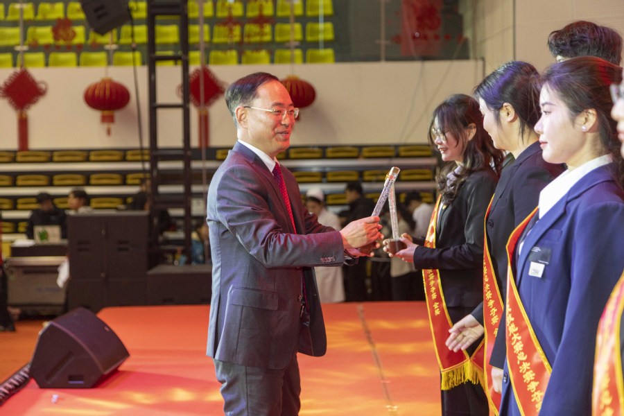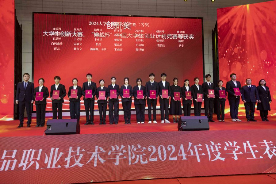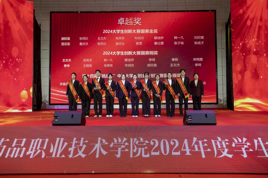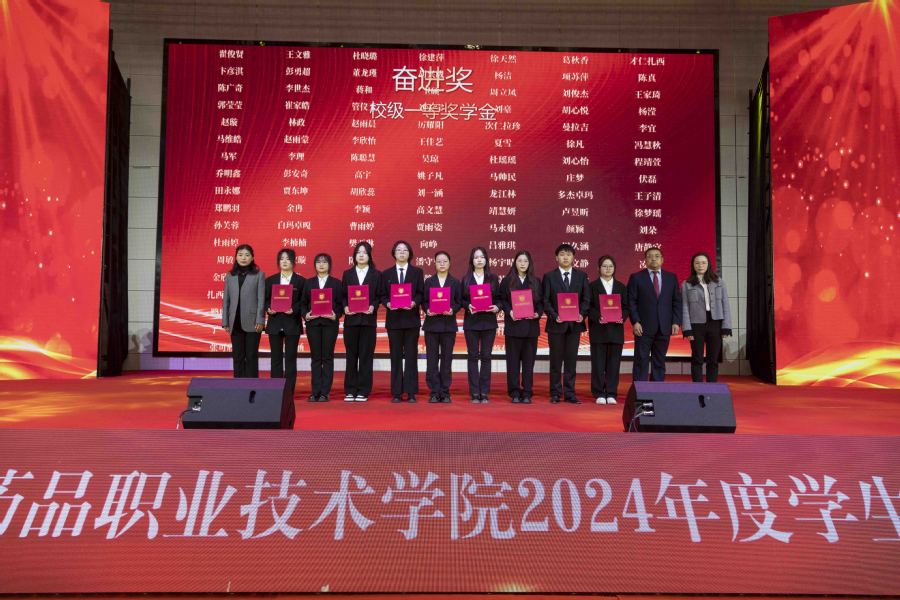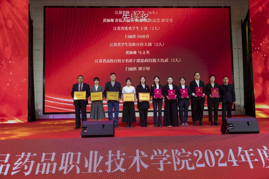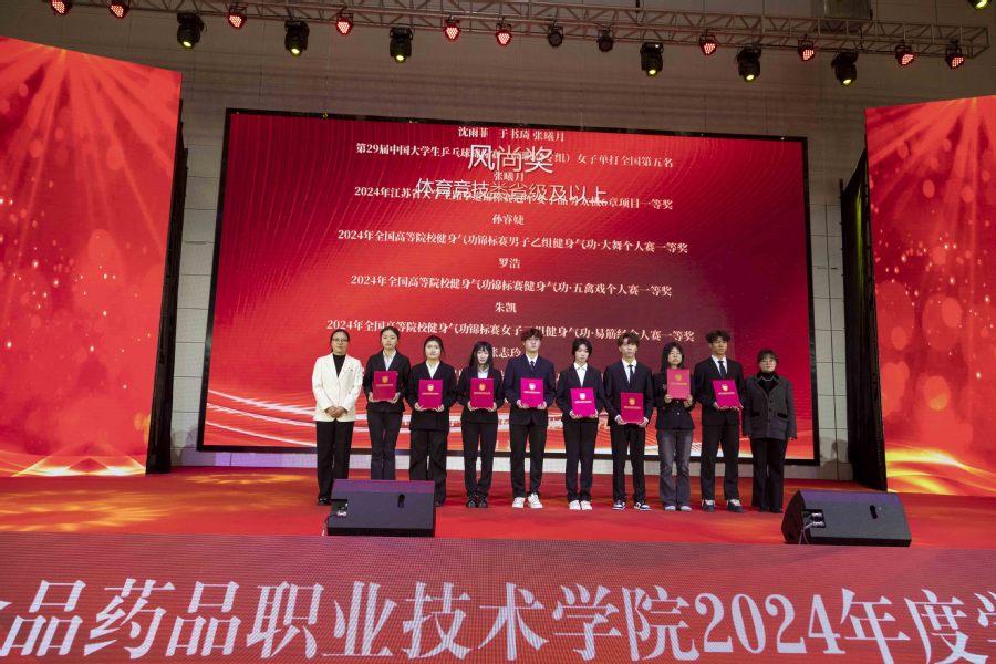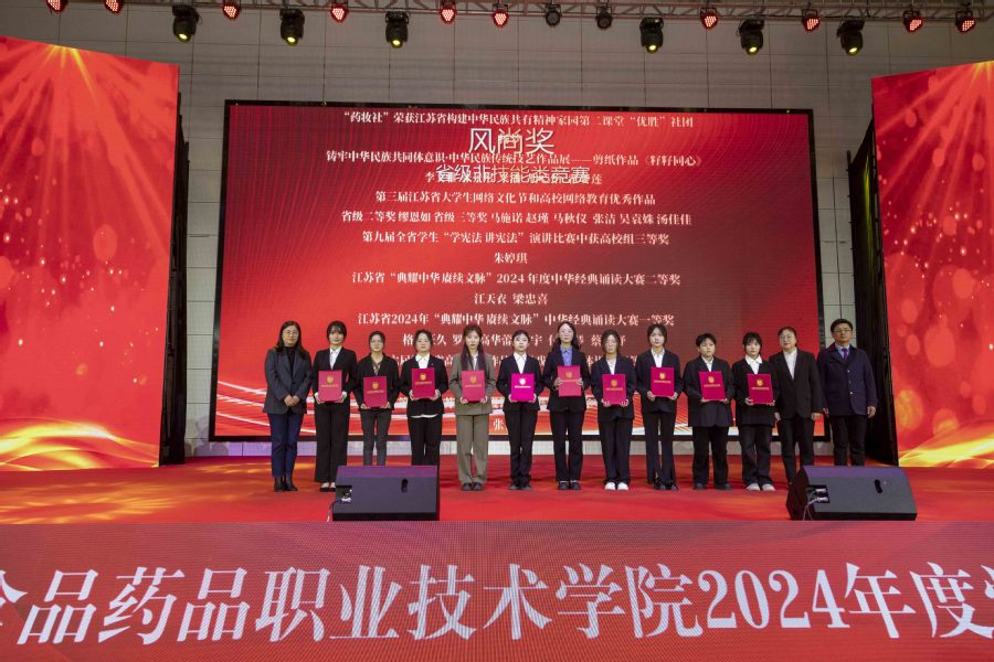 党委书记薛宇、校长翟玮玮为同学们颁奖 我校党委书记薛宇以“榜样”“奋斗”“期许” 三个关键词,深情寄语全体苏食院学子。他指出,2024年度在学校全力推进 “双高” 建设争先进位的征程中,同学们以实际行动汇聚起推动学校前行的磅礴力量;期待全体同学在职业教育这片大有可为的广阔舞台上,充分展现新时代更为宏大、更具引领性的榜样力量。他强调,本次学生表彰大会,堪称一堂生动鲜活的思政课。期望全体同学学习领悟这份不懈奋斗的精神,奋力书写强国有我的青春华章。他嘱托同学们不辜负时代的召唤、学校的培养、家庭的期望以及社会的信任,将个人成长与时代发展紧密相连,成长为祖国发展的坚实脊梁,让青春在为祖国、为民族、为人民的不懈奋斗中,镌刻下属于苏食院学子的璀璨印记。