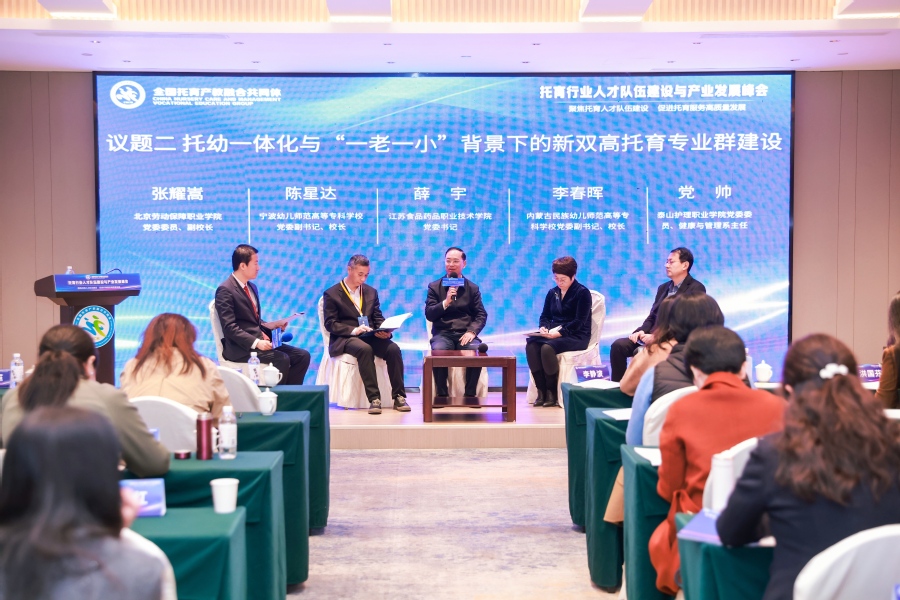 3月28日,由教育部职业教育发展中心、中国人口学会指导,全国托育产教融合共同体主办,内蒙古民族幼儿师范高等专科学校、北京金科职桥科技发展有限公司、北京金融街职业技能培训学校联合承办的全国托育行业人才队伍建设与产业发展峰会在北京召开。我校党委书记薛宇受邀出席峰会,健康医学院相关人员陪同参加。 会议以“聚焦托育人才队伍建设,促进托育服务高质量发展”为主题,汇聚政府、高校、行业企业代表、科研单位、专家学者,共探托育行业高质量发展与人才培养新路径。 薛宇作为托育产教深度融合示范院校嘉宾代表参加圆桌会议,围绕“托幼一体化与‘一老一小’背景下的‘新双高’托育专业群建设”议题,从“政校企行融合发展共建托育专业群新模式”角度分享我校托育工作典型经验,并与内蒙古民族幼儿师范高等专科学校党委副书记、校长李春晖,宁波幼儿师范高等专科学校党委副书记、校长陈星达,泰山护理职业学院党委委员、健康与管理系主任党帅等院校负责人,从专业群定位、课程体系重构、数字化教学资源开发等维度,探讨了托育专业群服务区域经济、对接产业升级的实践路径,强调“以群强专、以专促群”的建设理念。 主题会议结束后,我校作为牵头单位之一参加高等教育出版社托育系列教材编写会,与会专家对托育专业核心课程教材的编写架构和样章进行了热烈讨论。我校牵头编写婴幼儿托育服务与管理专业核心课程教材《婴幼儿意外伤害预防与处理》,此次教材编写是基于前期我校参与《婴幼儿伤害预防与处理》课程建设研究,该课题是教育部职业教育发展中心承接的国家卫生健康委员会人口监测与家庭发展司委托课题《基于数字化的托育岗位职业能力与人才评价标准研究》的子课题之一。