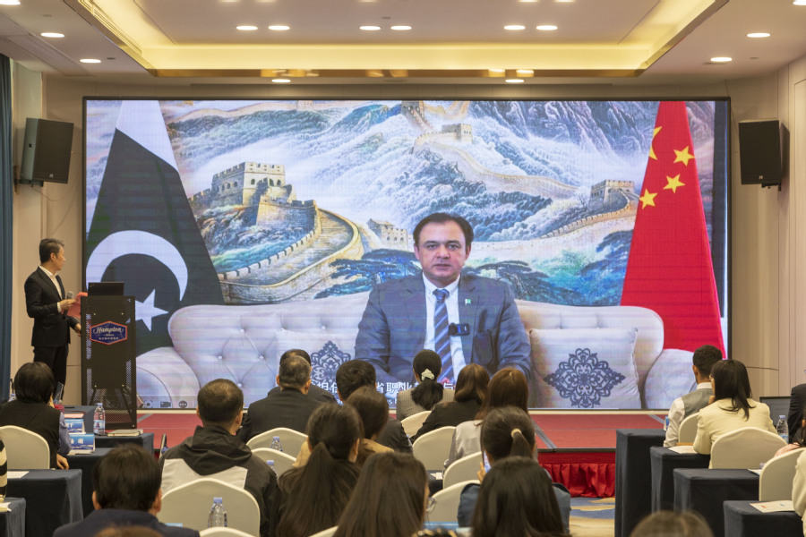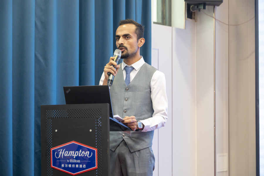 巴基斯坦信德省职教局局长法瓦德・噶法尔・苏姆鲁致辞 致辞环节结束后,举行了食品智能加工技术、食品检验检测技术专业群国际教学资源库建设项目启动仪式,并为项目成员颁发证书,标志着中巴教育合作迈入实践新阶段。