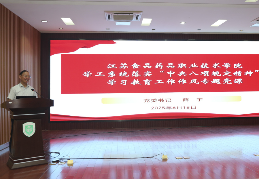 6月18日下午,我校在第四会议室召开学工系统工作作风专题交流会,深入学习贯彻中央八项规定精神。校党委书记薛宇、党委副书记安进、纪委书记夏燕萍出席会议,会议由安进主持。 会上,学生工作处处长李金霞、团委书记张鹏程分别汇报学工和共青团系统工作作风情况,既总结高效执行、主动担当等成绩,也指出基层调研不足、美育创新乏力等问题,并提出深化制度建设、打造育人品牌等改进措施。人工智能学院党总支书记刘玲、药学院党总支副书记胡会敏、食品学院分团委书记孙卉三位代表结合学院特色,围绕学风建设、学生帮扶、就业指导等工作,分享以生为本的务实举措与阶段性成果,深入剖析工作流程繁琐、队伍协作不足等短板,提出优化管理、强化团队建设举措。 夏燕萍通报典型案例,从勤政廉政角度要求学工人员严守纪律红线,在评优评先中坚持公平公正,杜绝微腐败。 薛宇讲授学工系统深入贯彻中央八项规定精神学习教育暨工作作风建设专题党课,他紧扣习近平总书记关于作风建设的重要论述和党的二十大精神,结合学工工作实际,从政治高度阐述了作风建设的重要性。薛宇强调,学工队伍作为落实立德树人根本任务的主力军,必须始终以中央八项规定精神为行动准则,坚决破除形式主义、官僚主义,以务实作风护航学生成长成才。他提出五个坚持要求,坚持服务学生,解决急难愁盼;坚持成果导向,提升育人实效;坚持立行立改,建立问题销号机制;坚持创新驱动,打造学工品牌;坚持科学考核,激励担当作为。 此次会议既是作风建设的深度检视,更是凝聚共识的动员部署。全体学工人员将以此次会议为契机,狠抓问题整改,锤炼过硬作风,以更饱满的热情、更务实的举措,为学校高质量发展和学生全面成长提供坚实保障。 学生工作处、团委全体人员,党委办公室、宣传部、保卫处等相关部门负责人,各二级学院书记、副书记及全体辅导员参会。