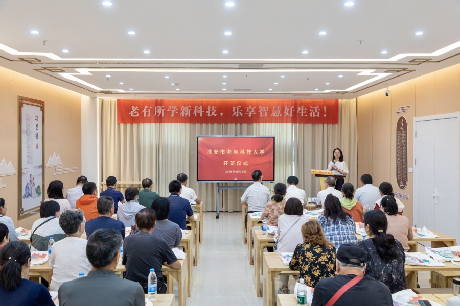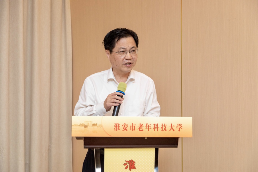 为深入贯彻落实江苏省科协关于提升全民科学素质的工作部署,推动“科普江苏”计划落地见效,我校牵头建设的“淮安市老年科技大学”于6月27日在我校中医馆正式开班。淮安市科学技术协会党组书记、主席解满启,淮安市老科技工作者协会会长、淮安市老年科技大学校长李冰,我校党委书记薛宇出席开班仪式。开班仪式由淮安市老年科技大学项目负责人李婉君主持。 薛宇书记在致辞中指出,淮安市老年科技大学建设是学校践行“大健康”发展理念、统筹推进“一老一小”服务高质量发展的重要举措,是学校推行“真心重教、红心育人、热心服务、初心使命”四心工程的重要体现。学校将深度挖掘专业特色,充分服务老年群体需求,实现以科技赋能智慧养老的“淮尚颐养”新型态。