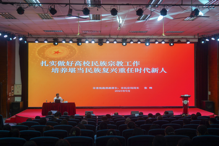 淮安市委统战部副部长、市民族宗教事务局党组书记、局长张峰作题为《扎实做好高校民族宗教工作 培养堪当复兴重任时代新人》的报告