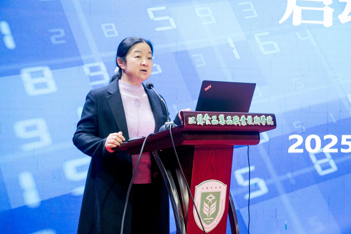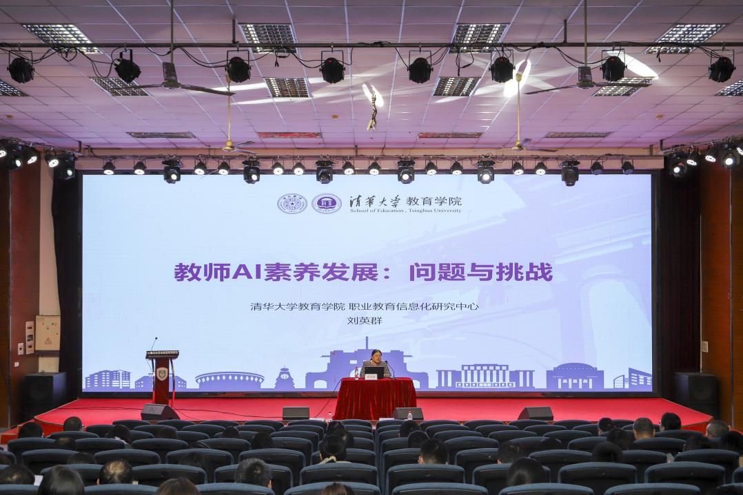 贾韶千副校长主持会议 会上,人事处副处长、教师发展中心副主任曹阳对《教师数字素养提升培训实施方案》进行了解读,从制定背景、具体安排、考核要求及成果运用等方面作了说明。数字校园建设中心主任张丹围绕“数字化素养提升技术路径”,从平台工具、实践方法和技术融合等角度,为教师明确了数字化能力提升的具体方向。 启动仪式后,清华大学教育研究院职业教育信息化研究中心副主任刘英群博士应邀作《职业院校教师AI素养现状与挑战》专题报告,进一步拓宽了教师对AI与教育融合的视野。