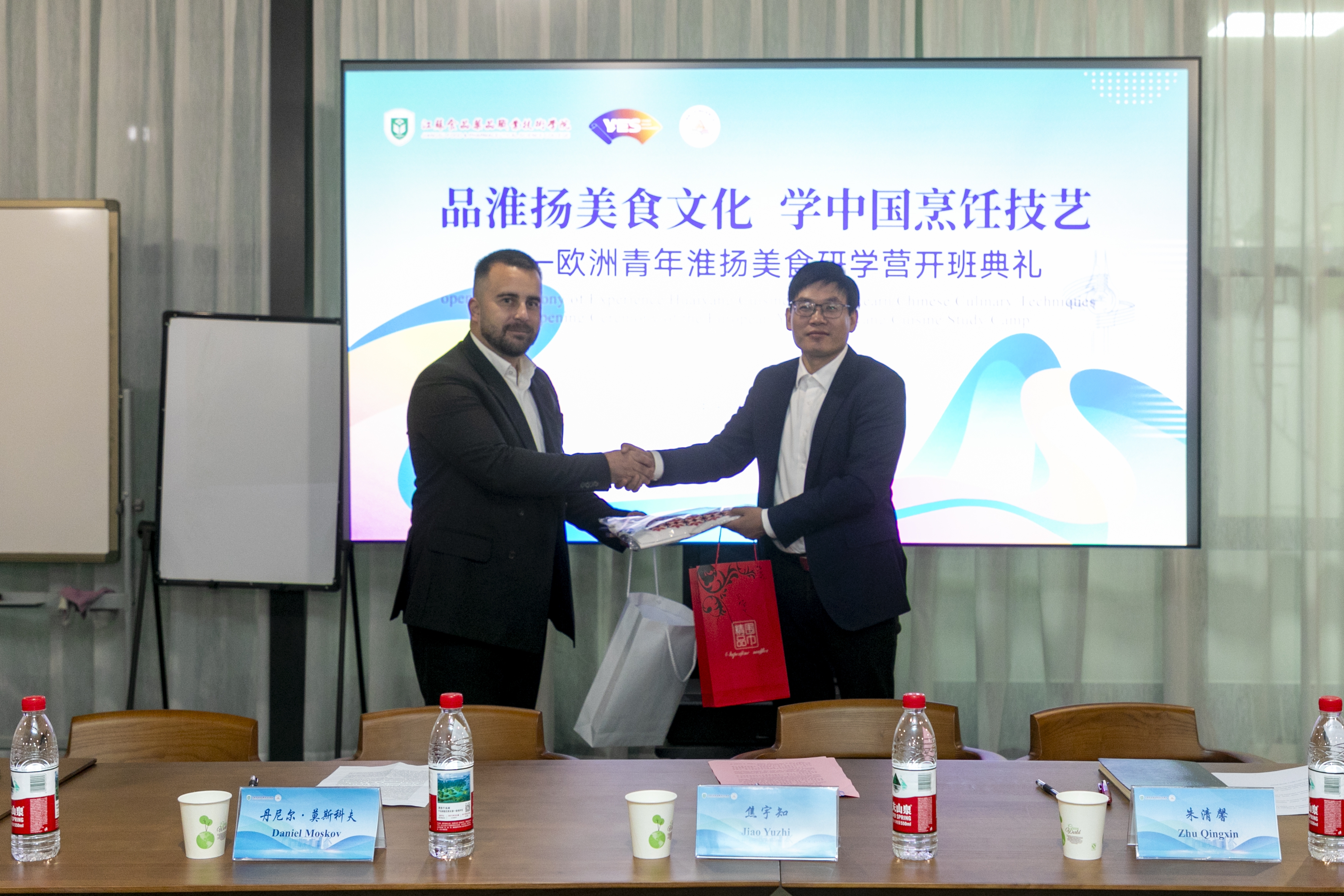近日,我校举办了“品淮扬美食文化,学中国烹饪技艺”欧洲学生短期游学项目活动,活动吸引了来自欧洲的31名师生参与,通过学术体验、实践操作、文化参访等多元的课程,感受到中国烹饪技艺的魅力。 10月23日开营仪式上,副校长焦宇知致欢迎词。他向远道而来的欧洲朋友们表示热烈的欢迎!期待以此次研学为契机,共同携手探索包括食品科技研发、传统饮食文化互鉴、职业教育师资联合培养在内的合作,并开展师生互访、课程共建与技能竞赛,让淮扬美食与保加利亚特色饮食在交流中碰撞新火花,为两国食品产业发展培养更多国际化人才。祝愿保加利亚师生在华期间交流愉快、收获满满,期待双方以美食为媒、以教育为桥,共谱中欧职业教育合作新篇章。