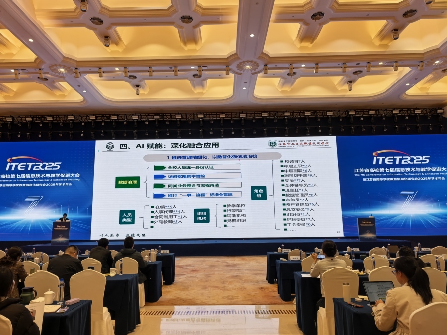 11月5日至7日,江苏省高等学校教育信息化研究会2025年学术年会在无锡召开,大会以“人工智能+高等教育融合创新发展”为主题。我校副校长焦宇知受邀参会,在上午校长高峰论坛与下午专家报告环节,结合学校实践分享思考,同时学习省内高校先进经验,为我校教育数字化建设汲取启发。 上午的校长高峰论坛围绕“AI重塑高等教育”主题展开研讨。焦宇知副校长结合教师AI应用中“不想用、不敢用、不会用、用不好”的普遍问题,介绍了我校的初步解决方案。为提升教师数字素养,我校将AI应用能力纳入教师核心素养,设立“数字化教学示范岗”以案例带动整体提升,同步开展专业化培训;自主编写数字素养提升教材并制作配套微课,为教师提供贴合需求的学习资源。在资源保障方面,持续推进覆盖算力与前端应用的AI中台建设,通过教师档案袋建设和全生命周期数据治理,为教师成长提供精准支持。此外,学校组建技术帮扶团队提供“一对一”指导,明确应用规范防范风险;提出的“小切口突破、校校联合分担”建议获与会嘉宾认可,后续我校将参考兄弟院校经验进一步优化举措。 下午专家报告环节,焦宇知副校长以《江苏食品药品职业技术学院基于“数据治理+场景应用+AI赋能”的智慧校园建设实践》为题,分享了我校智慧校园建设的初步思路与阶段性成果。我校以“服务教学、赋能管理、惠及师生”为目标,通过顶层设计推进建设,尝试构建标准化数据体系、拓展智慧应用场景,探索AI与教学管理的深度融合以提升效率。未来,学校将紧扣“双高”建设任务,以智慧校园提质为抓手,推动数字资源与专业群深度融合,持续探索人才培养模式革新。报告中,焦宇知副校长也表示,将认真学习其他高校先进做法,进一步完善我校智慧校园建设方案。 此次省教育信息化年会为我校提供了宝贵的交流学习平台。通过参会,我校既分享了教育数字化建设的初步实践,更学到了省内高校的优秀经验。未来,我校将继续深耕教育数字化领域,积极借鉴先进理念与做法,不断优化智慧校园建设,努力提升数字化服务能力,为培养适应AI时代需求的高素质技术技能人才、推动职业教育高质量发展持续探索。