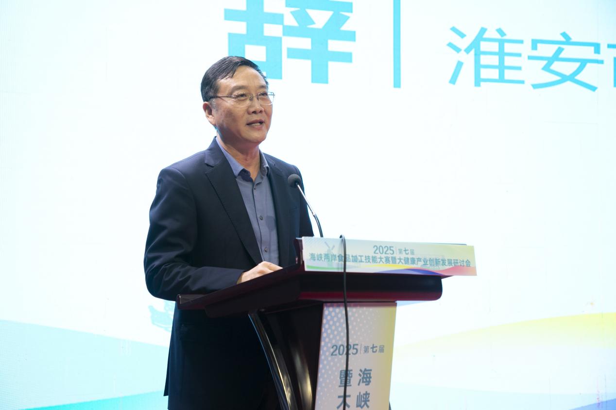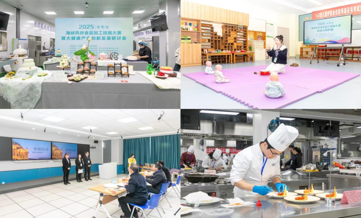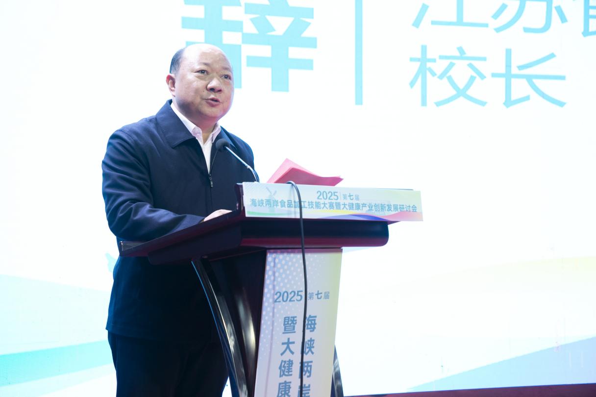 11月26日至11月28日,2025第七届海峡两岸食品加工技能大赛在我校举行。江苏省台办三级调研员吴长征、我校校长安进、淮安市侨办主任蔡昀、淮安市台办副主任徐宜祥、台湾高雄科技大学教授黄世钰、民革淮安市委会副主委董进出席开幕式,开幕式由我校副校长焦宇知主持。本次大赛汇聚了来自大陆和台湾地区的13所院校120名优秀选手,围绕“糕点制作”“中式烹饪”“营销创意”“健康照护”四个赛项,以“团圆”“融和”“老味道,新传承”“幼有所育、幼有善育”为主题展开技能交流与角逐。 安进校长发表致辞,对参加本次活动的领导、老师和选手表示欢迎,期待各参赛院校能够充分展示专业风采,赛出精湛技艺,彰显独特风格。台湾高雄科技大学教授黄世钰表示,历史悠久的古城淮安给她留下了深刻的印象,预祝本次比赛圆满成功。淮安市侨办主任蔡昀发表致辞,他表示感谢学校为此次活动所提供的专业平台和大力支持,为两岸人才的培养与交流创造了宝贵机会,预祝本次活动能进一步激发创新火花,结出更多务实合作的硕果。