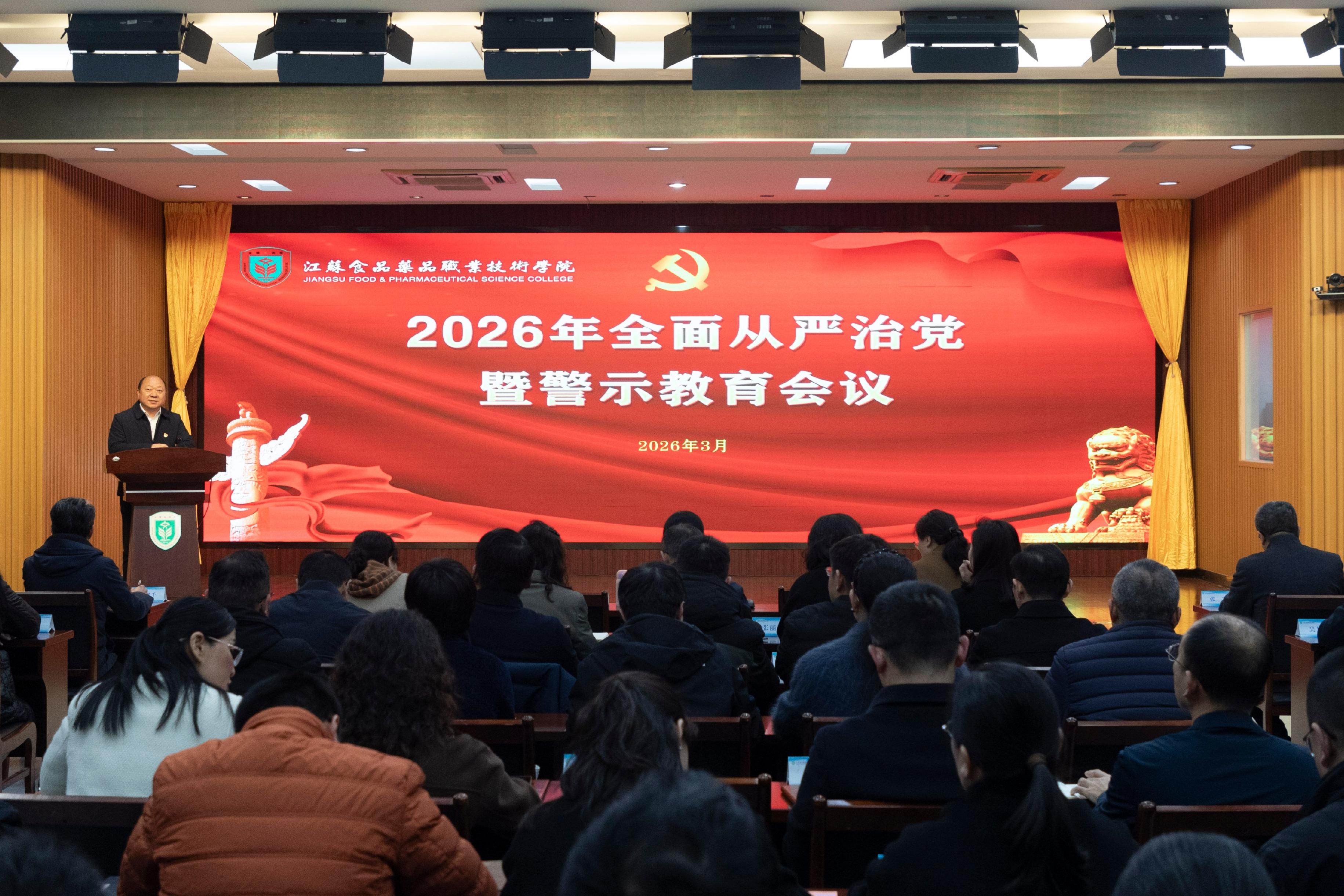3月17日下午,学校在第四会议室召开2026年全面从严治党暨警示教育大会。党委书记翟玮玮出席会议并讲话,校长安进主持会议。 翟玮玮指出,过去一年,学校党委始终将政治建设摆在首位,坚持以习近平新时代中国特色社会主义思想为指导,坚决贯彻落实中央及上级党委各项决策部署,扎实开展深入贯彻中央八项规定精神学习教育,抓紧抓实省委巡视反馈问题整改,稳步推进廉洁文化建设取得新成果,学校全面从严治党工作取得新成效。 翟玮玮强调,2026年是“十五五”开局之年,也是学校第二期国家“双高建设计划”纵深推进的关键之年。面对新形势新任务,全校上下必须强化责任落实,以过硬作风凝聚攻坚合力,以实干担当树立和践行正确政绩观。一是坚持将管党治党责任扛在肩上,紧盯关键环节防控风险,构建闭环落实机制;二是坚持将巡视整改成果巩固深化,标本兼治,健全长效管控机制;三是坚持将风腐同治机制抓实抓细,聚焦重点领域专项治理;四是坚持将监督触角向基层延伸,持续整治师生身边不正之风;五是坚持将干部队伍建设摆在突出位置,强化干部“八小时内外”监督,打造忠诚干净担当的高素质专业化干部队伍。 安进在主持会议时指出,全体同志要高度重视,深学细悟、笃行实干,把树立和践行正确政绩观融入全面从严治党全过程,切实将会议精神转化为办学治校实效,层层压实责任、级级传导压力,强化监督保障,深化正风肃纪反腐,为学校高质量发展提供坚强政治与纪律保障。 会上,学校领导班子成员、二级院部、职能部门负责人向党委书记递交了《2026年全面从严治党党风廉政建设责任书》;与会同志集体观看了警示教育专题片《斩断风腐交织链条》;党员干部代表于溥春、李琴、张春凯作表态发言。会前,学校党委会专题研究了全面从严治党工作,审议通过了全面从严治党主体责任清单与纪委监督责任清单等文件。 全体校领导、学校纪委委员、中层干部、二级党组织纪检委员参加会议。