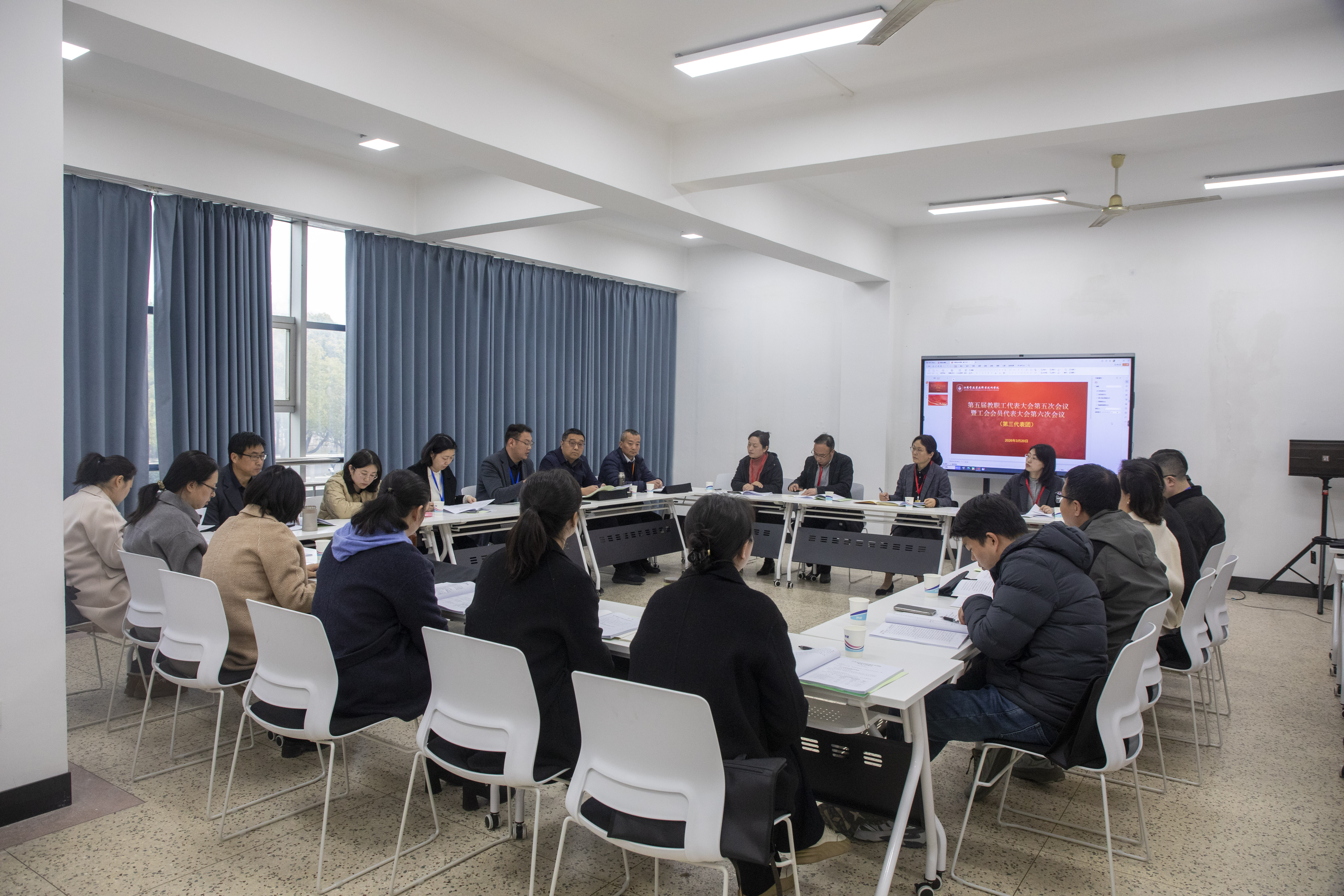 3月20日,我校召开了第五届教职工代表大会第五次会议暨工会会员代表大会第六次会议,全体校领导出席会议。全体“双代会”代表欢聚一堂,总结过往、凝聚共识,共绘学校新时代发展蓝图。大会由副校长贾韶千主持。