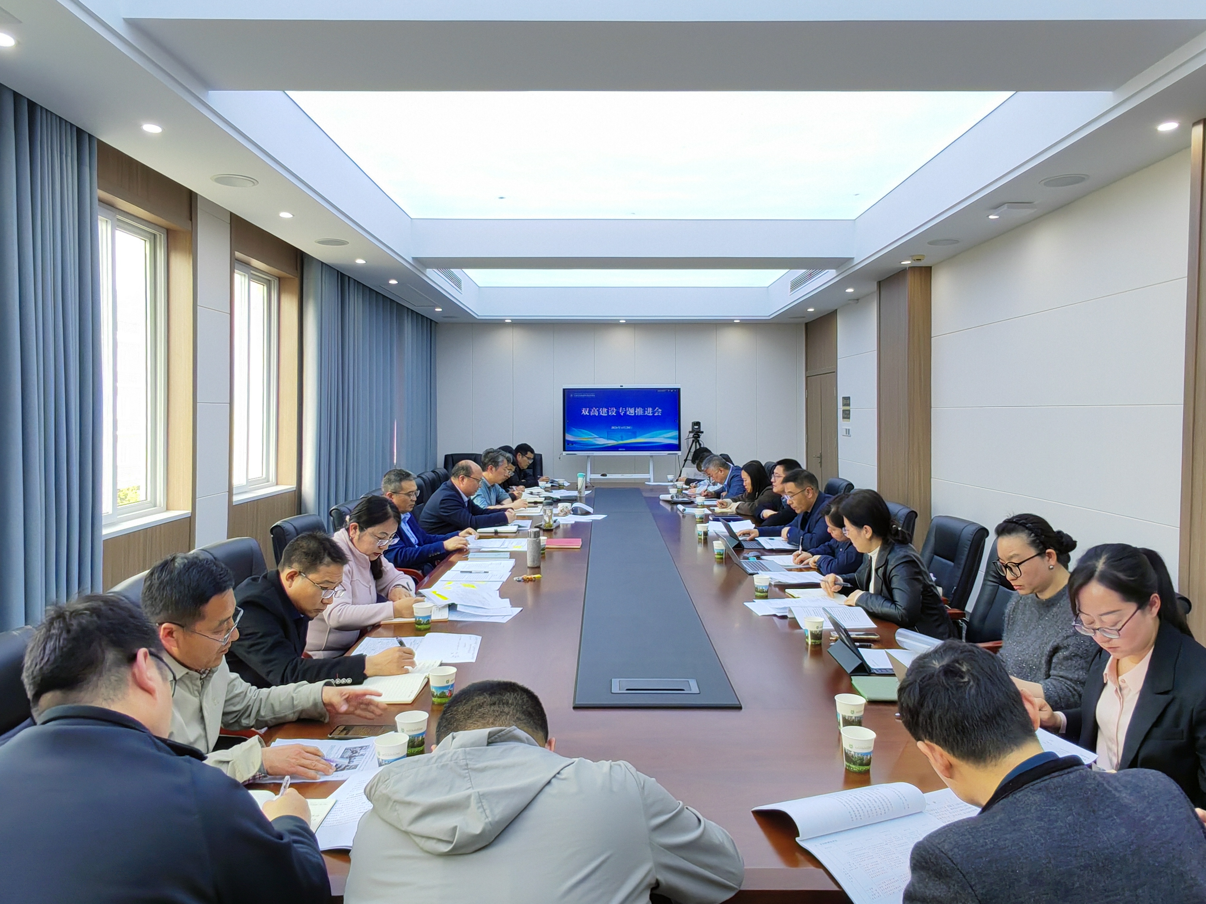 为扎实推进第二期“双高计划”建设,高标准、高站位谋划布局2026年建设任务,发挥双高在学校整体发展中的引领示范作用,4月20日、4月22日,我校在第五会议室召开双高建设专题推进会。校长安进,副校长贾韶千、张军、焦宇知出席会议。会议由贾韶千主持。 会上,双高建设牵头职能部门负责人依次汇报了推进全校五年建设的主要思路、2026年重点工作保障措施及难点任务,食品学院党政负责人及子项目负责人依次汇报了2026年任务推进情况及存在困难。 贾韶千、张军、焦宇知结合分管工作,分别就提前系统谋划、提高验收标准、打造标杆案例、厘清专业与产业映射关系、杜绝形式主义、体现育人实效、责任压实到人等方面提出具体工作要求。 安进指出,牵头职能部门要发挥校级统筹作用,做好规划部署,强化部门协同沟通,推动全校高质量发展;食品专业群要发挥示范引领作用,将其建设经验升华为校级制度、模式与标准,有效辐射带动其他二级学院共同发展,实现从“点上突破”到“面上引领”的跃升;要以体系化思维进行项目建设,聚焦实体化运行、实效化产出,服务于育人本质,注重内涵建设,高标准、高水平落实任务,提升学生综合能力素养;要自我革命,加快实现“人工智能+”,实时对接产业需求,推动教学关键要素系统化变革;持续打造典型项目,形成特色品牌;立足区域,构建开放型、功能型合作平台,提升技术服务支撑能力;及时学习兄弟院校优秀做法,优化激励机制与支持体系。 “双高计划”校级牵头职能部门负责人、食品学院领导班子及子项目负责人、双高建设办公室相关人员参加会议。